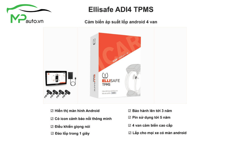 Trên tay cảm biến áp suất lốp kết nối màn hình Android – ICAR Ellisafe ADI4