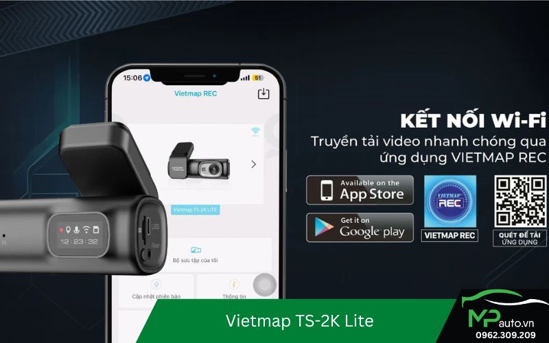 Vietmap TS-2K Lite trang bị công nghệ truyền dữ liệu thông qua kết nối WIFI không dây, giúp việc xem lại, lưu trữ chia sẻ video dễ dàng trên các thiết bị hệ điều hành Android, IOS thông qua ứng dụng Vietmap REC.