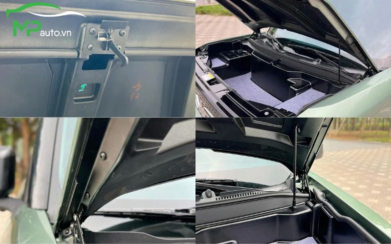 - Sử dụng dễ dàng: Nhờ thiết kế thông minh, cốp đựng đồ phía trước có thể được mở một cách thuận tiện chỉ bằng một nút bấm bên trong xe, khi mở nắp capo sẽ có bản lề để đỡ và có khoá cơ tiêu chuẩn ở đầu nắp. Lưu ý rằng khi mở cốp bạn sẽ giữ nút vật lý khoảng 5s và có cảnh báo khi mở cốp giúp anh chị khỏi quên (cứ 20s sẽ cảnh báo 1 lần).